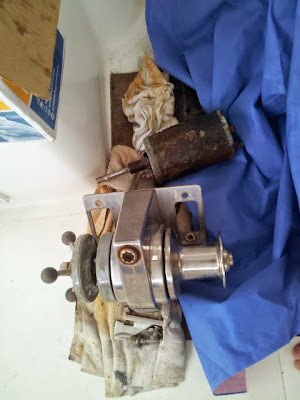 Also, there is something on the boat that works just fine, but just looks like hell. No, not me. I am talking about the windlass, the thing that dutifully pulls that heavy anchor and chain up off the bottom for us. Ours is made by a company called Lighthouse Windlass, and they now have the beast. It was shipped out this week, all 105 pounds of windlass and crate, so that they can turn this ugly duckling into a swan. The windlass was still working, but the poor thing was on it's last leg. The motor housing was rusted and cracking. Any day now it was going to stop completely, and then, there we would be. Stuck to the bottom. Have to get a broker to list her where she sits I suppose. Well, we were not going to let that happen, so out the thing came, and one hernia later, it is in California. They are going to fix it up good as new, and send it back. Awesome.